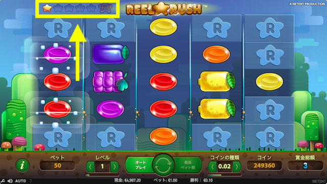 リール・ラッシュの還元率は96.96%と、ビデオスロットの中でも高め設定です。