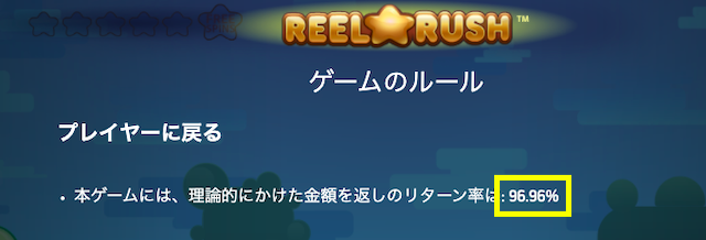 - リール・ラッシュ(REEL RUSH)の還元率は96.96%