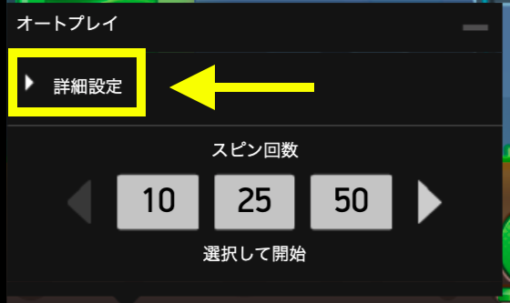 オートプレイの左上にある『詳細設定』をクリックしましょう。