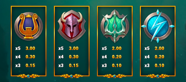 ライズ・オブ・オリンパスの各シンボルの配当表