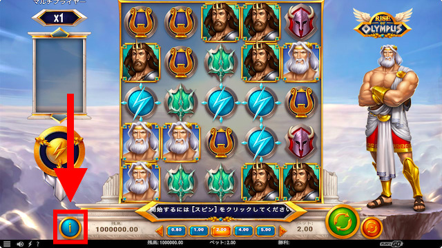 各シンボルの配当は、画面左下の『i』アイコンから確認できます。