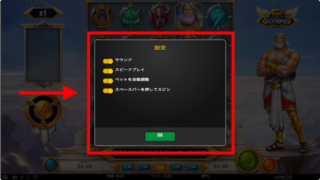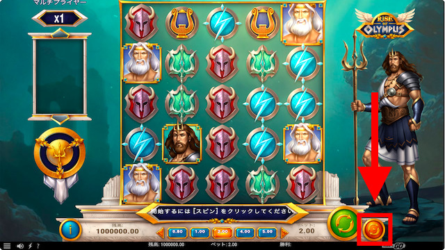 ライズ・オブ・オリンパスは、他のスロットでみられるフリースピン購入機能などがないため、基本的に明確な必勝法はありません。