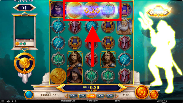 マルチプライヤーとは、配当成立した後の賞金額を何倍にも乗算してくれる機能のことで、ライズ・オブ・オリンパスでは最大20倍まで増加します。