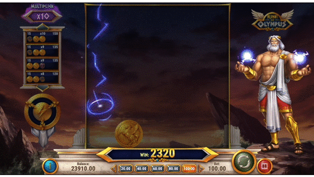 3人のオリンパス神が変わる変わる技を発動させたり、連鎖によってマルチプライヤー演出するなど、豊富なシステムが搭載されていて、波に乗れば高額賞金を獲得することもできます。