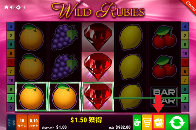 - ワイルド・ルビーズ(Wild Rubies)は2種類のギャンブル機能を楽しめる