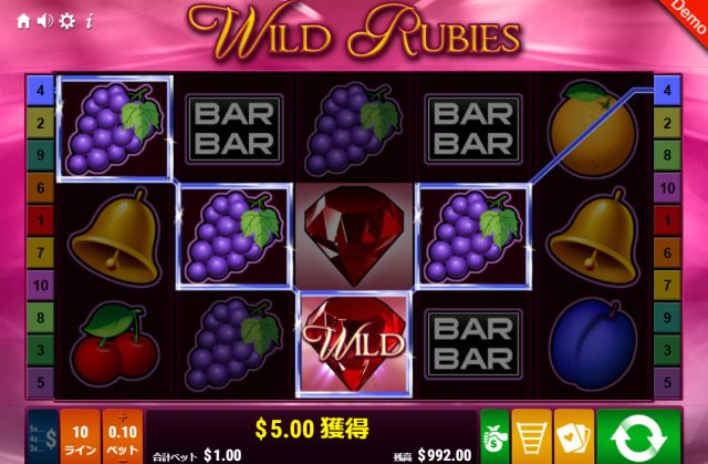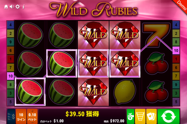 - ワイルド・ルビーズ(Wild Rubies)は昔ながらのレトロな雰囲気が特徴のスロット