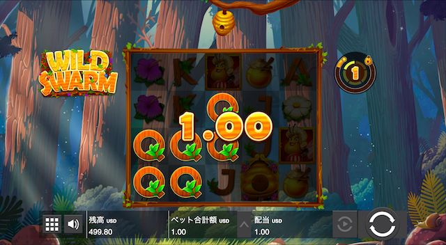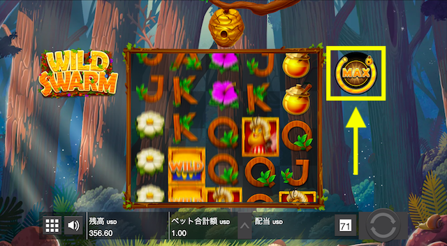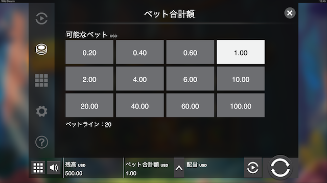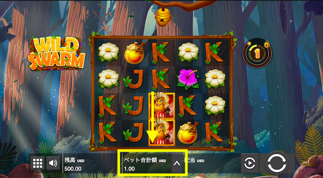 まずワイルド・スウォームを起動したら、画面最下部のベット合計額から好みのベット額を設定しましょう。