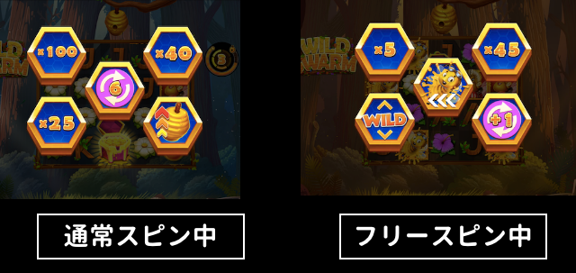 - ワイルド・スウォーム(Wild Swarm)は、フリースピンも2種類ある