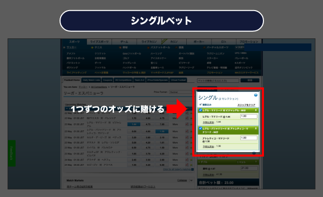 シングルベットは、1種類のオッズにベットする賭け方です。