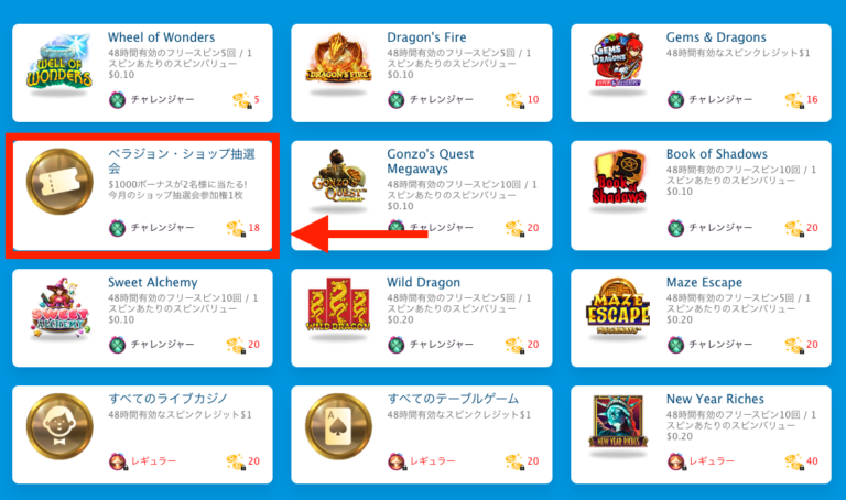 ベラジョンカジノ「ショップ抽選会」の概要と賞金の獲得方法
