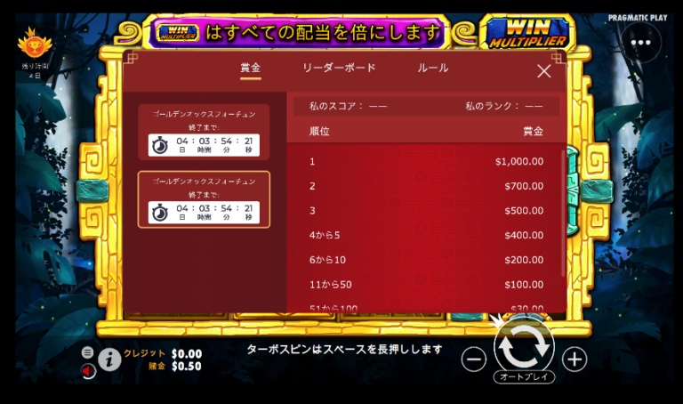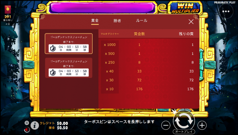 キャッシュドロップの個数とマルチプライヤーの倍率は以下をチェック。