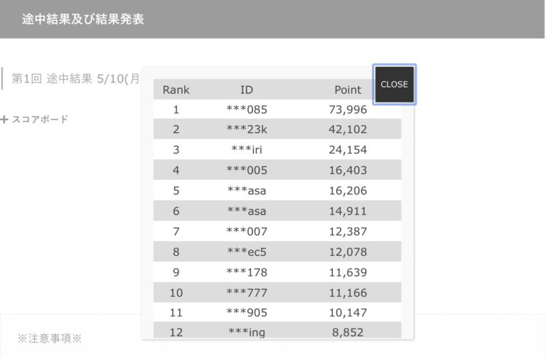 - 賞金を獲得できるのは上位30名で、毎週20万円を山分けします。