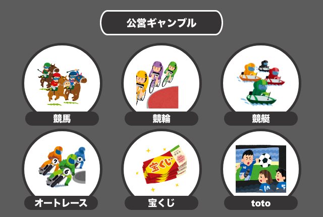 日本国内で法的に認められている下記に挙げる賭博行為(ギャンブル)は皆さんもご存じでしょう。