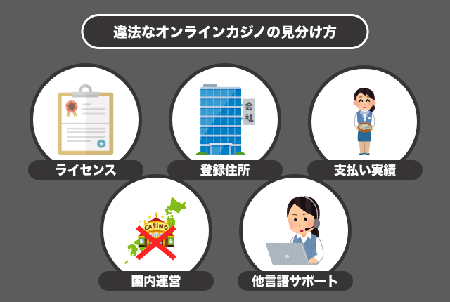 - 国内運営の違法カジノを見分ける知識をつけることが大切