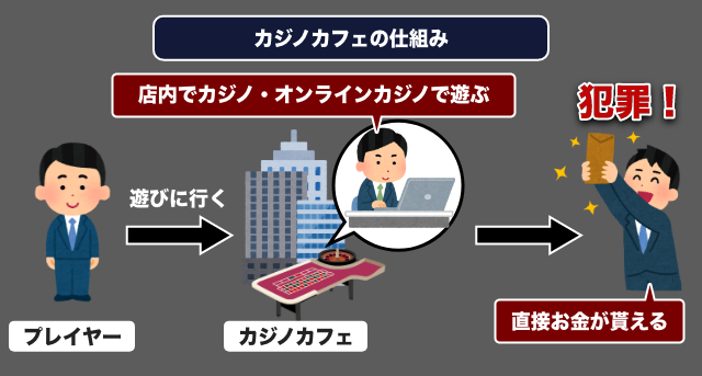 オンラインカジノを麻雀に置き換えると分かりやすいですが、カジノカフェは賭博罪が適用できる営業形態です。また反社会勢力の資金源の一つにもなっているため、国内ではカジノカフェの運営者だけでなく遊んでいるプレイヤーも厳しく取り締まっています。