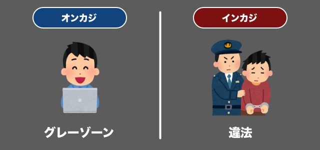 - インカジとオンカジの違い(遊ぶ場所、換金方法、違法性)