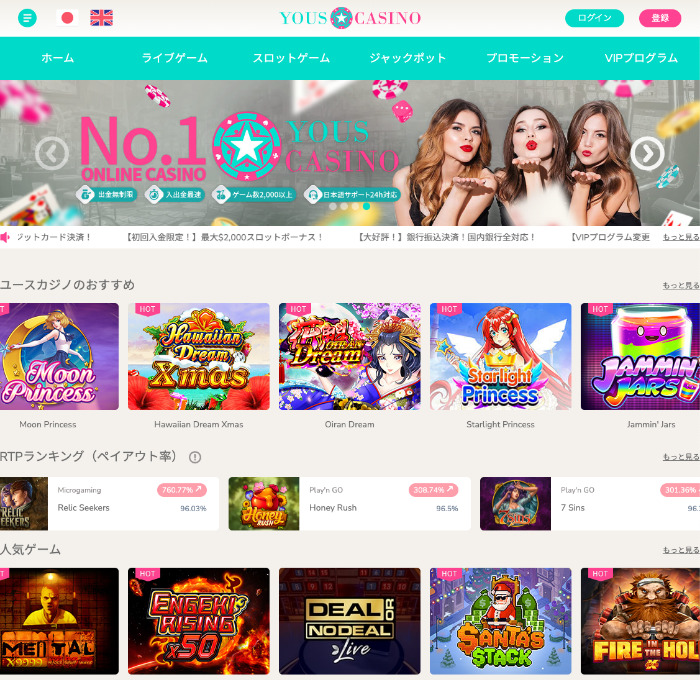 初回入金の50%分最高777キャッシュバックとゲームプレイで負けた後に即還元される「インスタントキャッシュバック」で負けた後も安心です。