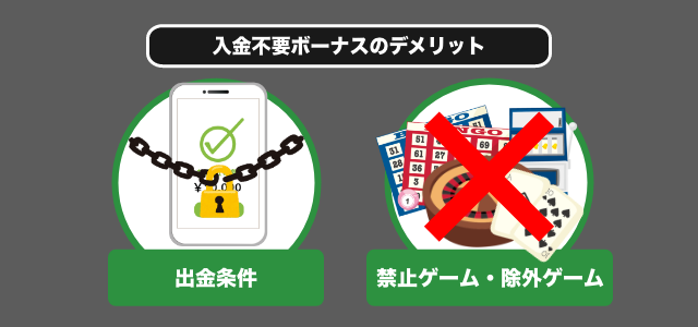 出金条件や除外ゲーム、禁止ゲームなどを踏まえると、本気でオンラインカジノで遊ぼうとしている人にとって入金不要ボーナスが逆に邪魔になることもあります。