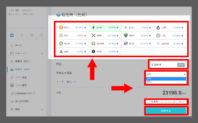 メニューにある「販売所(売却)」をクリックしてください。