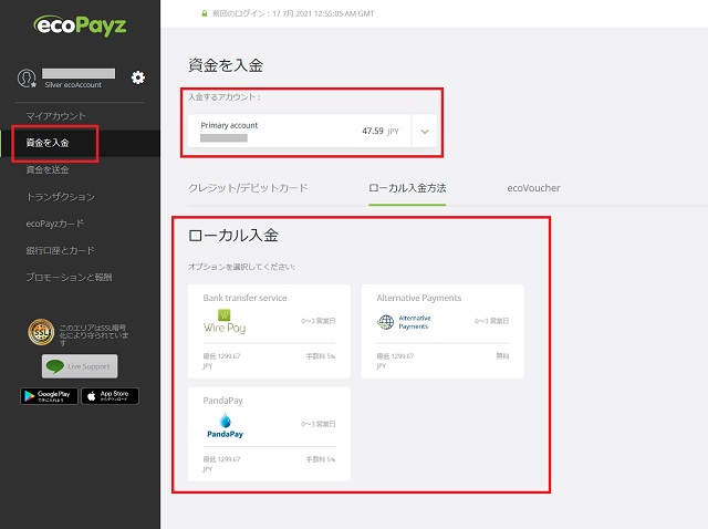 - エコペイズからオンラインカジノ・ブックメーカーへ入金する