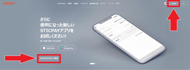 スティックペイ公式サイトにアクセスし、ページ上部の「会員登録」かページ左側の「STICPAYアカウント開設」をクリックしてください。