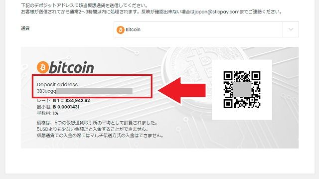 続いて仮想通貨(ビットコイン)で入金する方法について解説します。スティックペイに仮想通貨(ビットコイン)を入金する方法は、下記2つです。