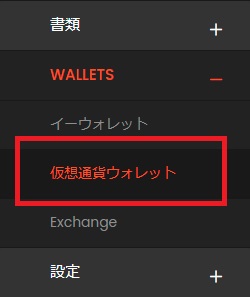 ログインページ左側メニューの「WALLETS」から「Exchange」をクリックしてください。