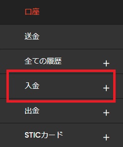 まず、ログインページ左側メニューで「入金」をクリックすると、入金で使用できる決済手段が表示されます。