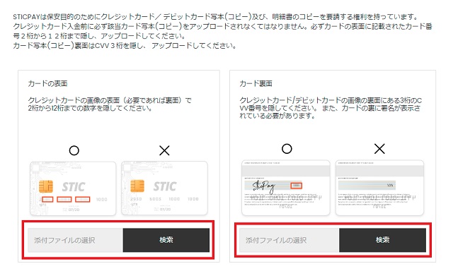クレジットカードの表面・裏面の画像が用意できたら、手順に従って画像をアップロードしましょう。