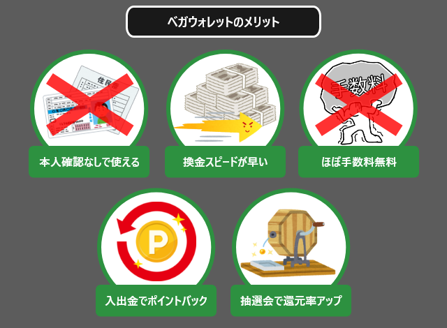 それではベガウォレットのサービス特徴・メリットについて、以下5項目に分けて解説していきます。