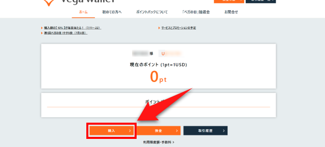 - ベガウォレット(Vega Wallet)のポイント購入・入金方法