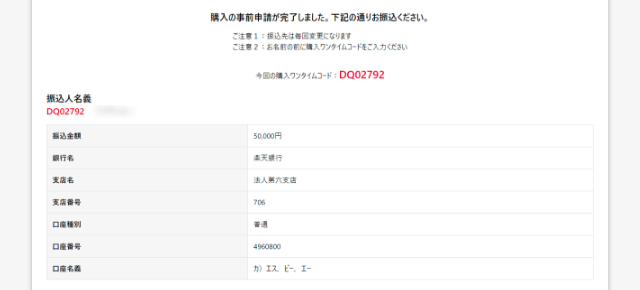 ワンタイムコードを忘れると反映まで半日~1日程度かかることもあるので、振込時に氏名の前に入力するのを忘れないようにしてください。