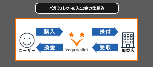 ベガウォレットをオンラインカジノの入出金で使用する際の一連の流れは下記のようになっています。