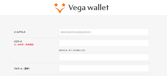 ベガウォレットを選択したら必要事項を入力しましょう。