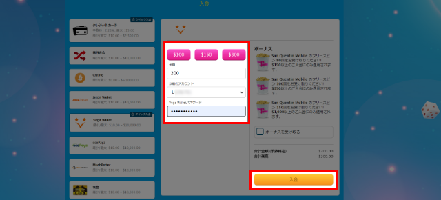 - ベガウォレット(Vega Wallet)でのオンラインカジノ入金方法