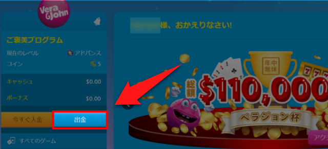 - オンラインカジノからベガウォレットへ出金する(ポイント受取)