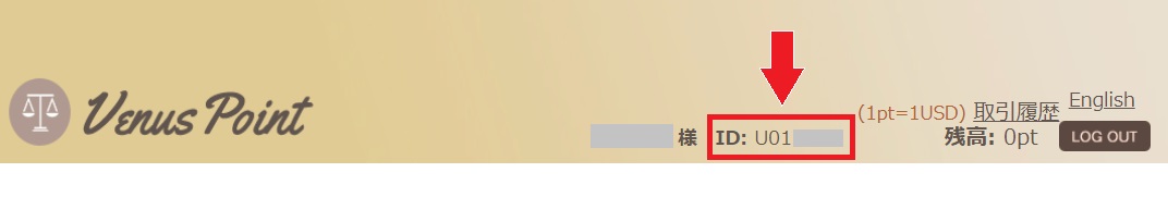 アカウントIDはヴィーナスポイントのログイン画面上部に記載されているUから始まる7桁の文字です。氏名の右側にあります。