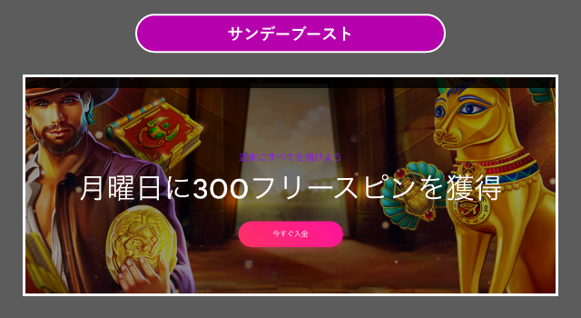 | サンデーブースト | 300回フリースピン | 24時間 | |