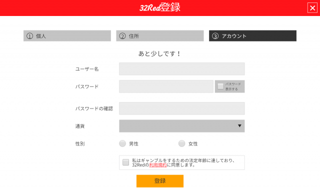 32レッドカジノへの登録は非常に簡単で、なんと2分ほどで完了します。
