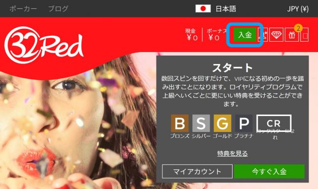 入金は即時反映されるので、32redカジノへ戻り確認してください。