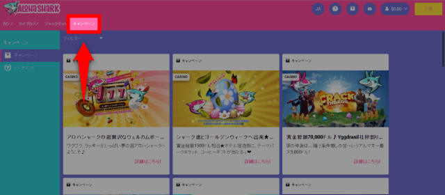 アロハシャークは毎月イベントやキャンペーンを行っており、指定された条件を満たしたり抽選会に参加することでボーナスや賞品を貰うこともできます。