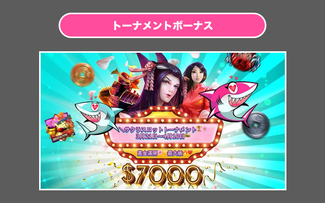 アロハシャークは定期的に独自トーナメントを開催しており、トーナメントで上位入賞すると豪華賞金ボーナスが貰えます。