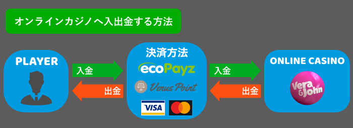 採用しているオンラインカジノごとに決済方法は異なります。どの決済方法が使えるかはオンラインカジノで遊ぶ前にご確認ください。