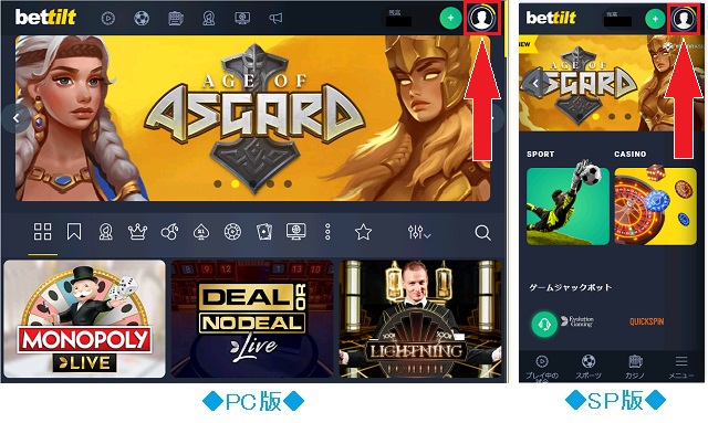 下記のボタンからベットティルトの公式サイトにアクセスします。