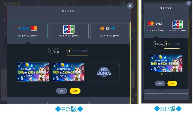 ベットティルトの新規登録者は全員初回~3回目入金までで合計$1000+最高100フリースピンを獲得できます。