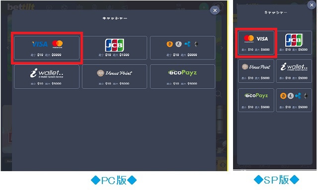 クレジットカード決済でVISA,MasterCardは定番ですが、JCBまで使えるオンラインカジノはほとんどありません。