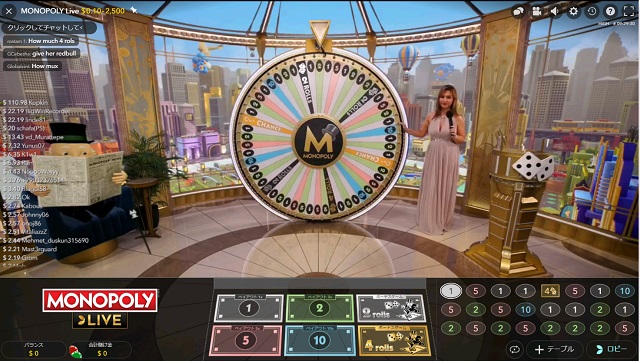 大きなホイールには1,2,5,10の数字が書かれており、ベットした数字が的中すればその数字分の配当をゲットできます。さらに2rollsまたは4rollsにベットして的中すればモノポリーのボードに移動し、ボート上をサイコロの出目どおりに進みます。