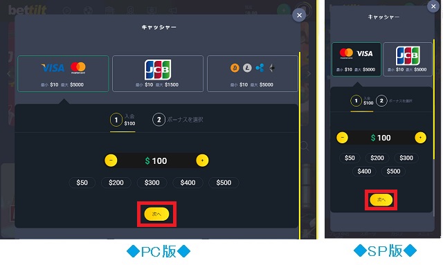 ベットティルトの日本プレイヤーが利用できる通貨はアメリカドル(USD)のみです。日本円は利用できません。また、今後新規通貨の導入があった場合でも通貨の変更はできません。