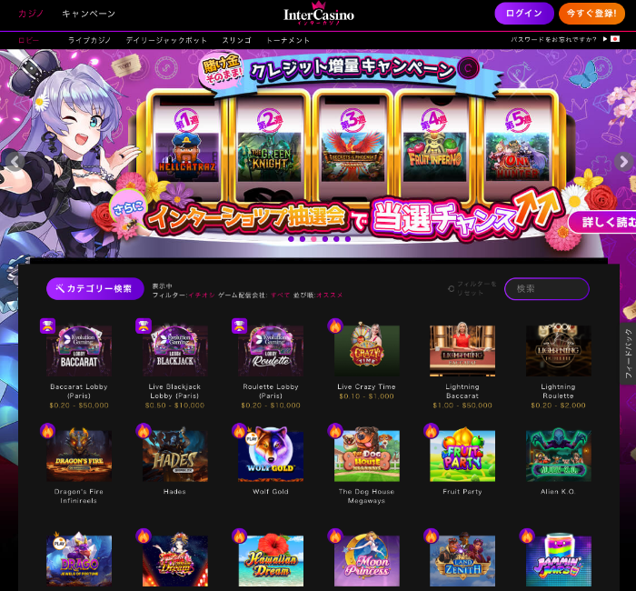 第3位はベラジョンカジノと同系列のインターカジノです。
