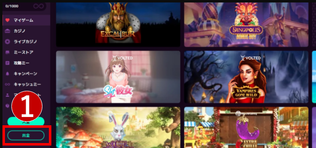 カジノミーで遊んで獲得した勝利金は、以下手順にしたがえば出金して現金化できます。